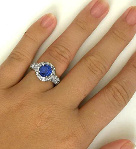 desirable, saturated cornflower blue color. The sapphire is beautifully cut as well and it is full of