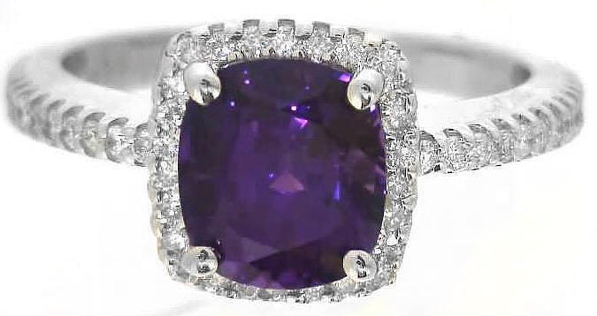 Gemstone: Natural Purple Sapphire Cushion Cut Purple Sapphire Diamond Halo Ring in 14k white gold