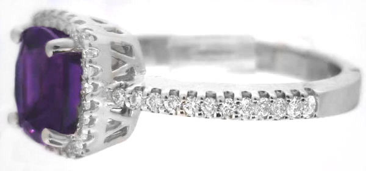 Rich Cushion Cut Purple Sapphire Ring in 14k white gold