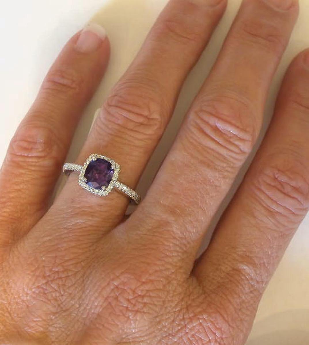 Natural Cushion Cut Purple Sapphire Rings in 14k white gold