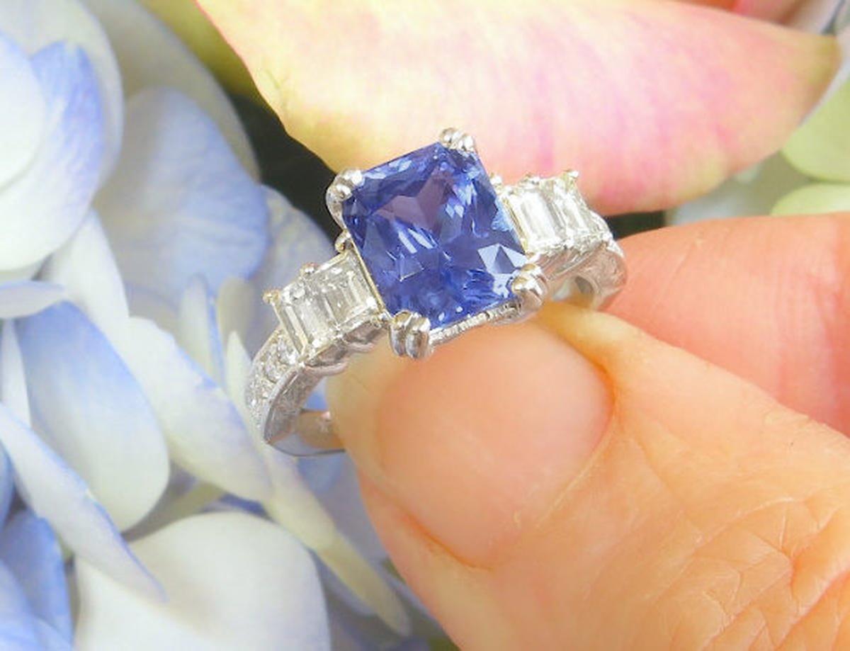 color with a tiny hint of periwinkle. Fine sapphires from Sri Lanka often