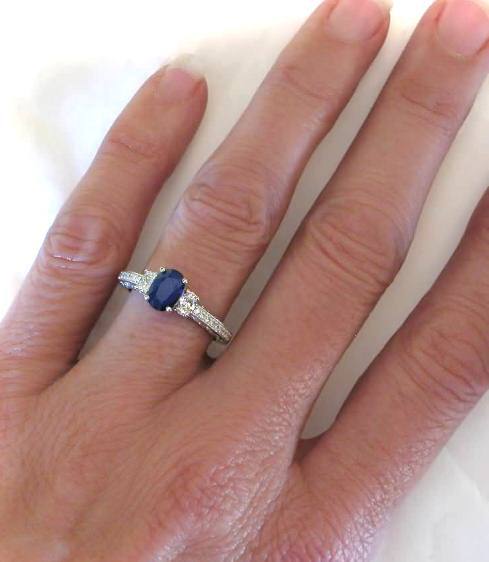 Vintage Sapphire Engagement Rings in 14k white gold   Vintage Oval Sapphire Engagement Rings in 14k white gold
