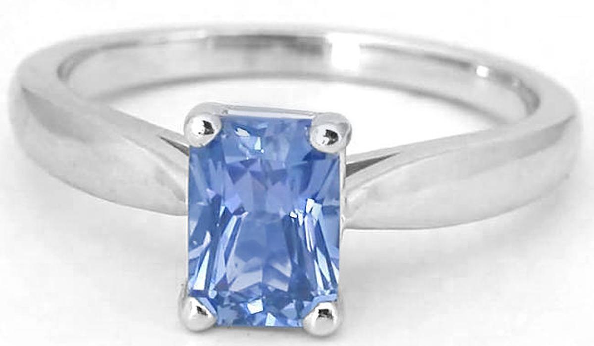 the perfect choice. Featuring a 1 carat radiant cut Ceylon blue sapphire,