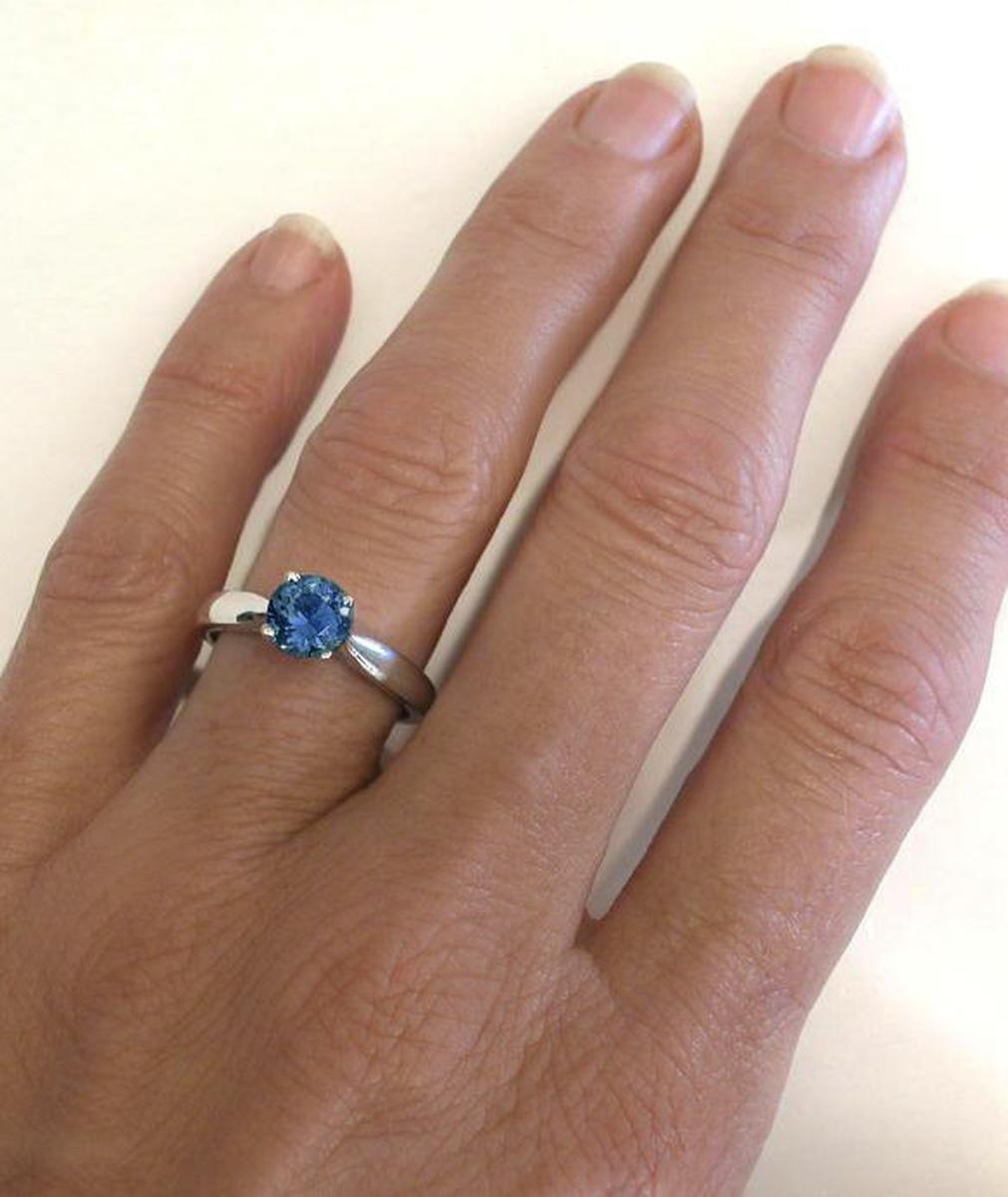 Gemstone: Natural Blue Sapphire 1 carat Genuine Round Blue Sapphire Solitaire Ring in Real 14k white gold for sale