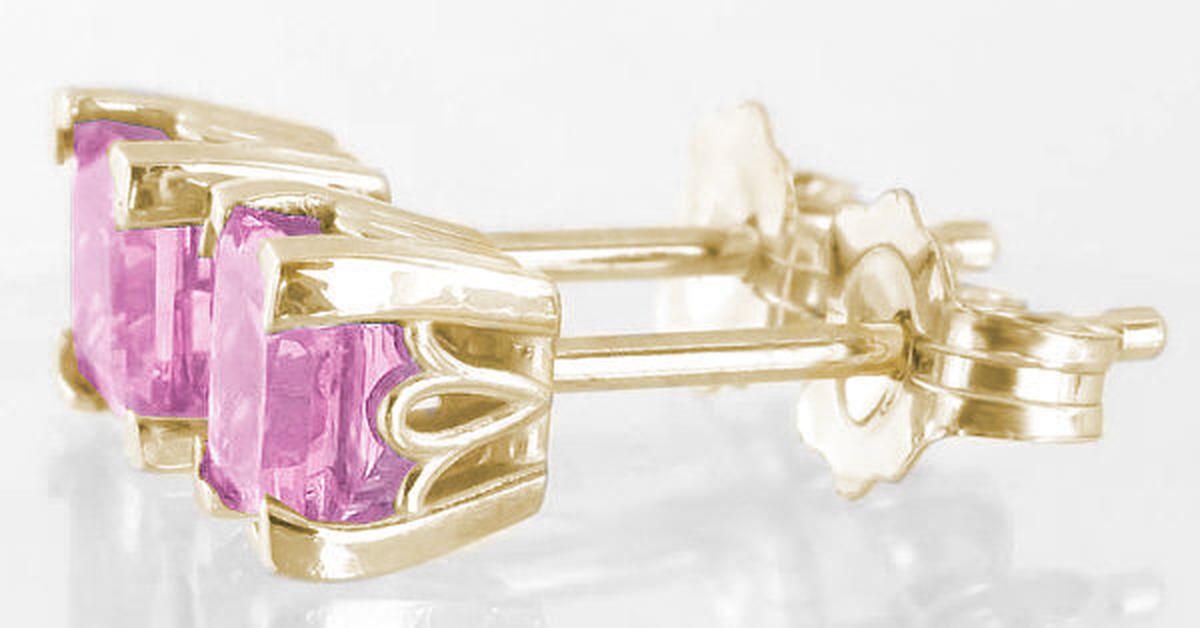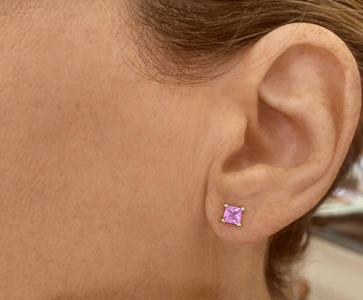 Princess Cut Pink Sapphire Earrings in 14k in 14k yellow gold   Pink Sapphire Stud Earrings in 14k yellow gold
