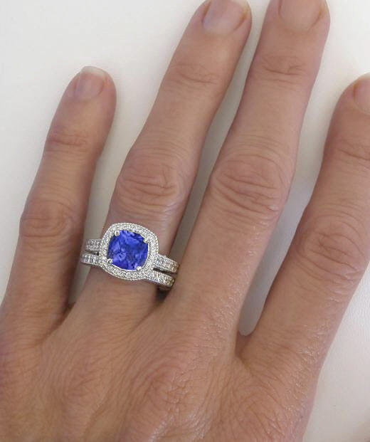Wedding Rings with Cushion Cut Tanzanite in 14k white gold