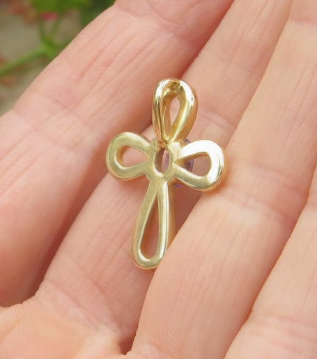 1/2 carat Real Tanzanite Cross in 14k yellow gold Natural Tanzanite Solitaire Cross Necklace in 14k yellow gold for sale Tanzanite Cross Pendant Necklace in 14k yellow gold