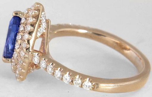Rose Gold Tanzanite Ring - Genuine Tanzanite with Diamond Halo Mounting