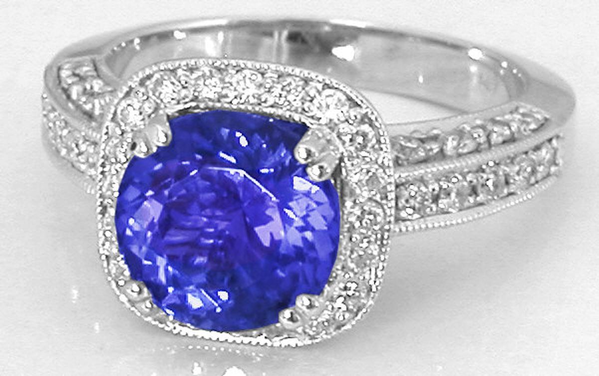 tones. This grade has always been difficult to find, and constitutes only 1% of all tanzanite production. The ring itself has so many wonderful design elements. From the