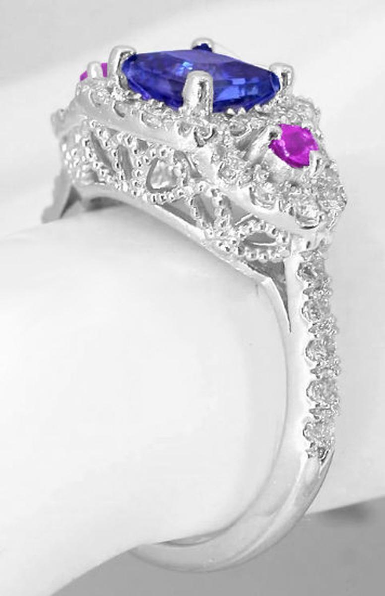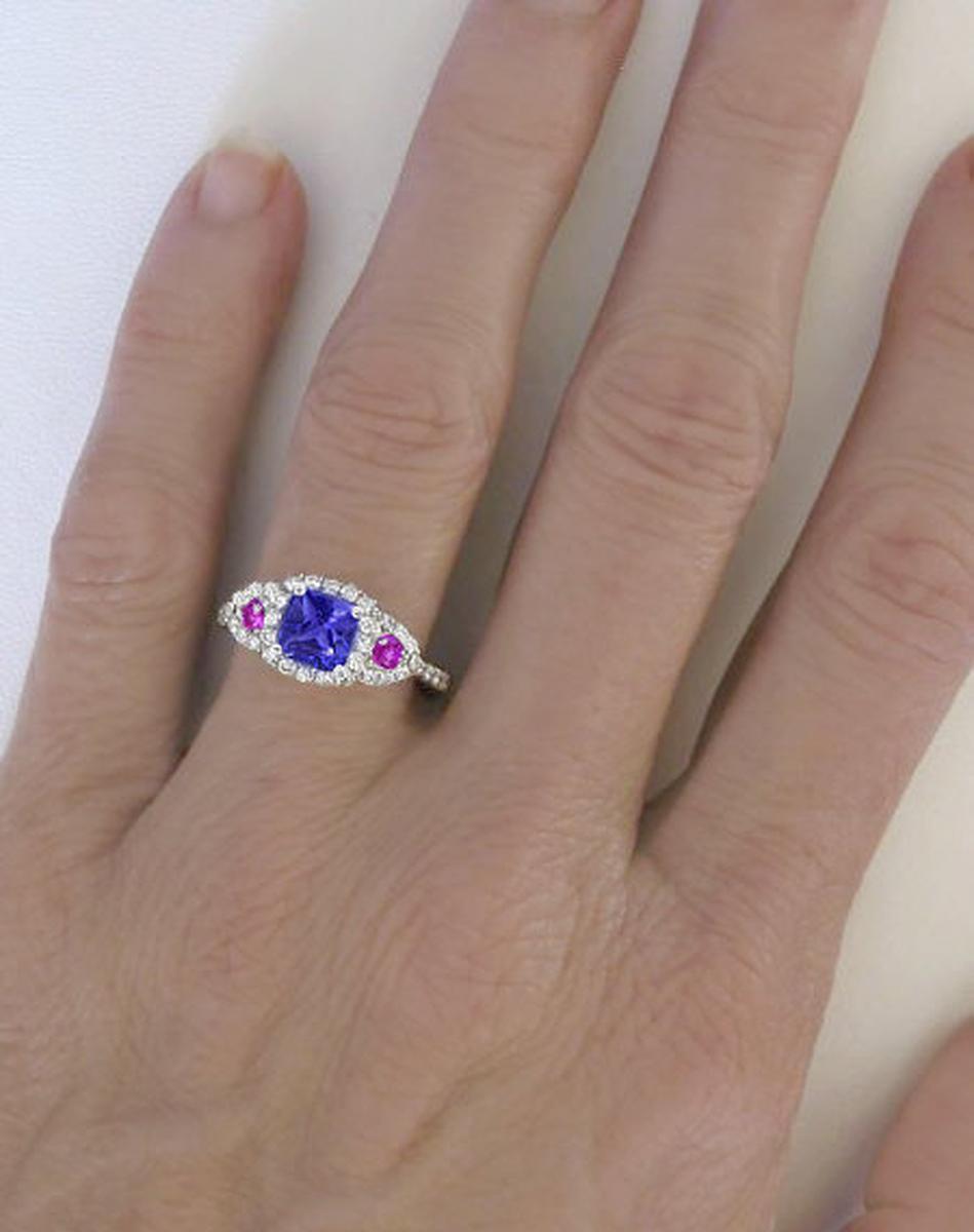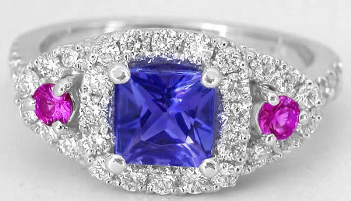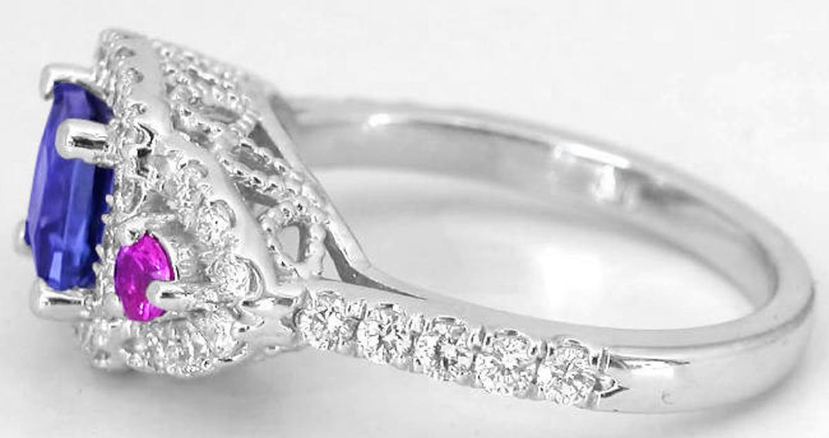 fine quality tanzanite and pink sapphire, set in a sea of brilliant