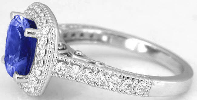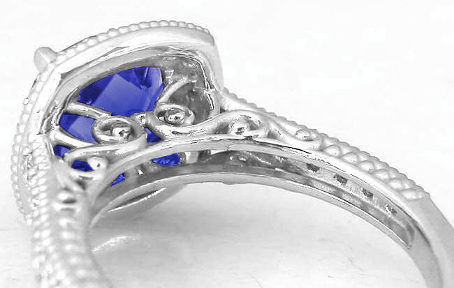 Cushion Cut Tanzanite Rings in 14k white gold   Beaded Detail on Tanzanite Rings in 14k white gold
