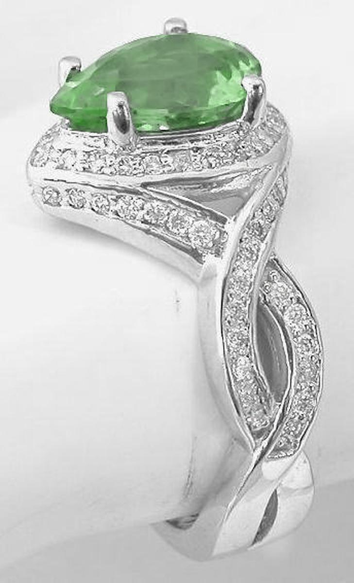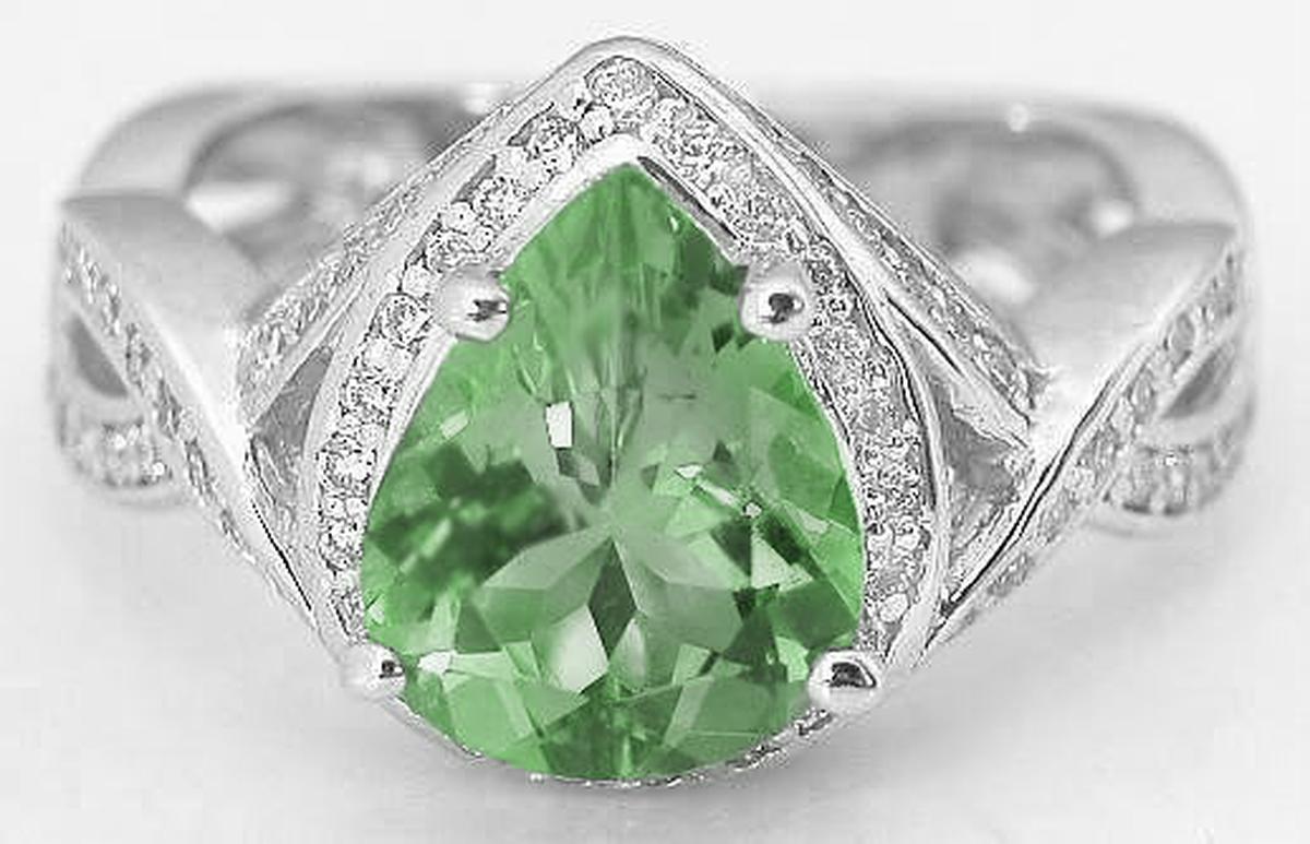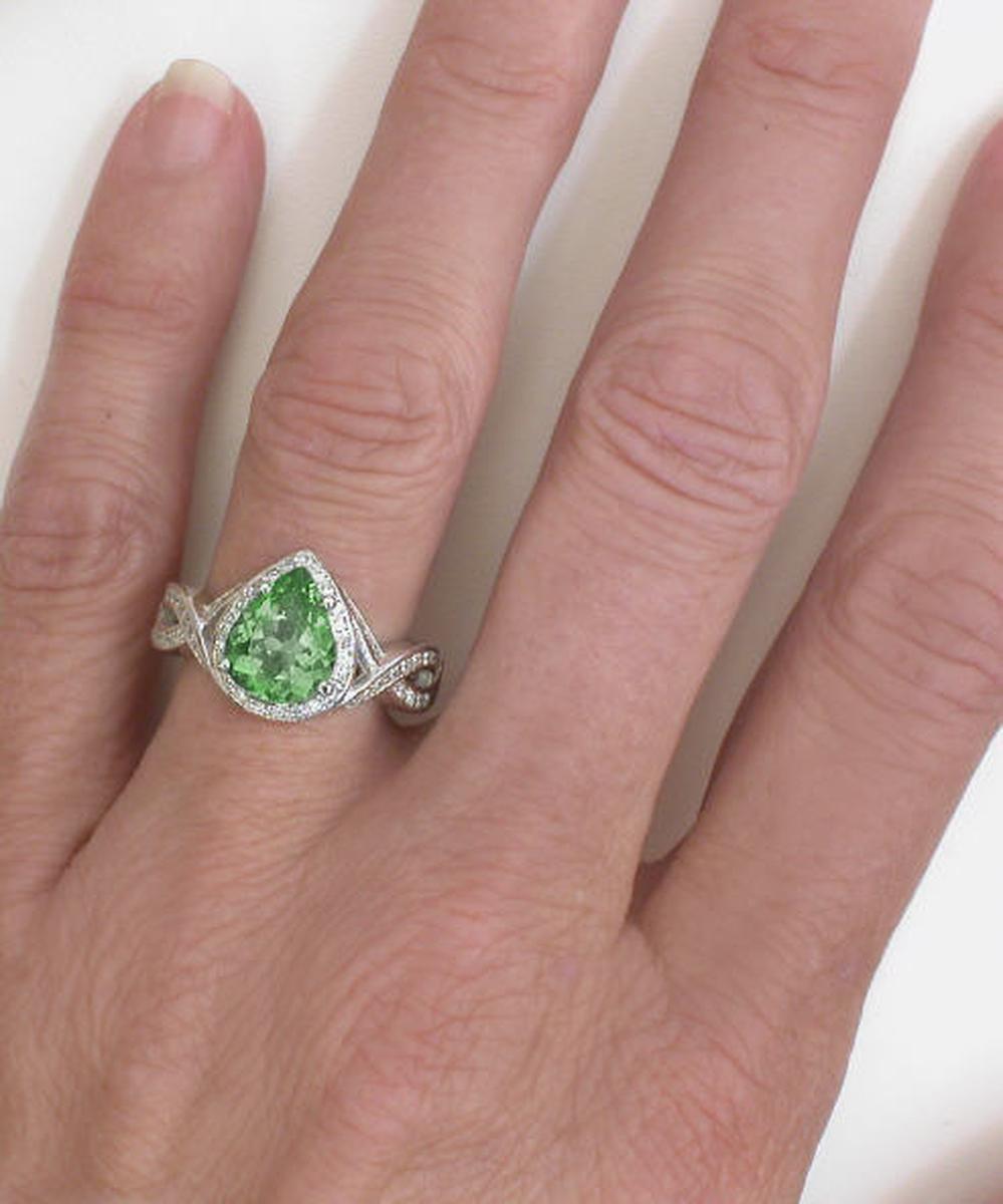 Unique Seafoam Green Tourmaline Rings in 14k white gold   Pear Shape Seafoam Green Tourmaline Rings in 14k white gold
