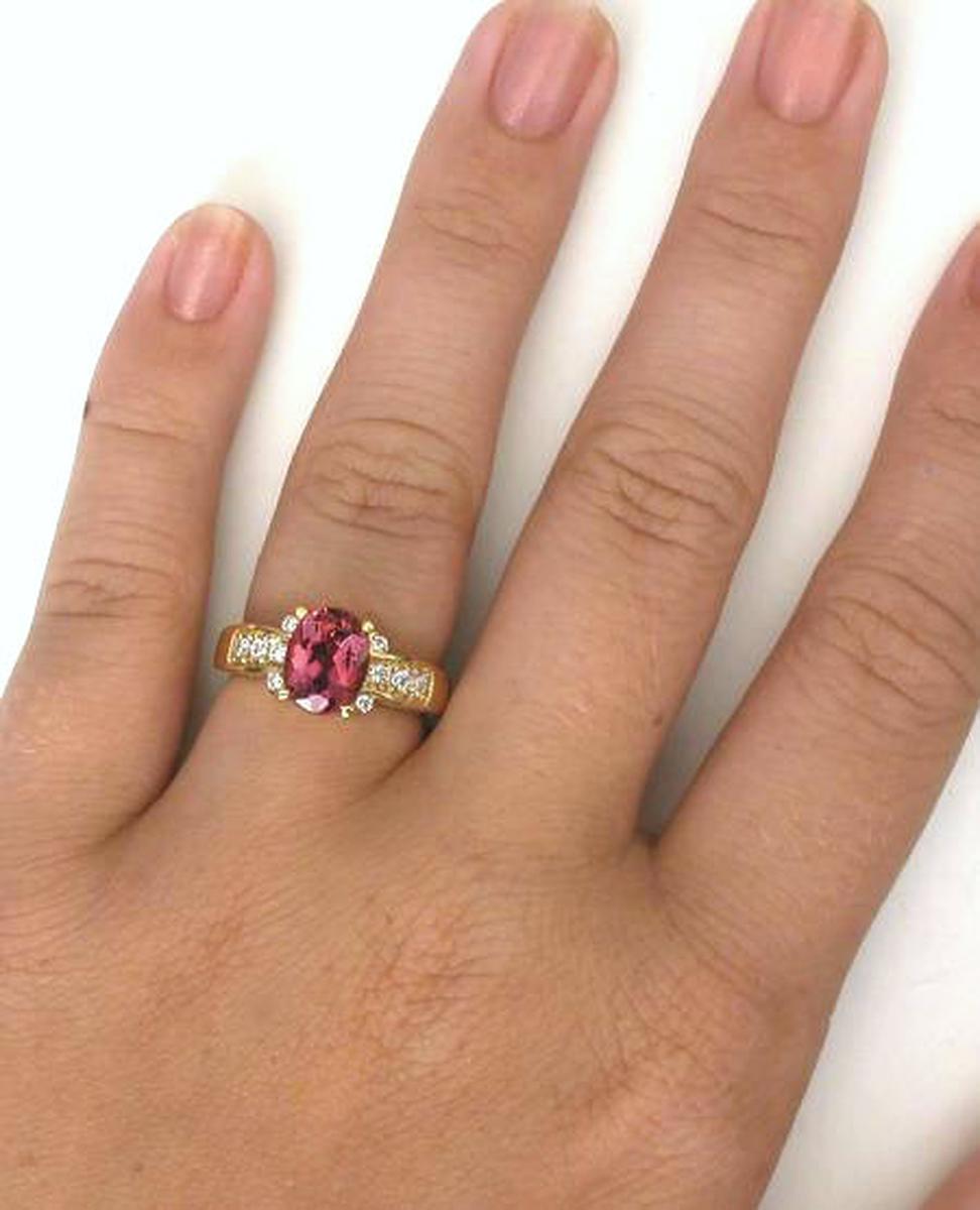 Real Oval Pink Tourmaline and Diamond Ring in solid 14k yellow gold for sale   Tourmaline Diamond Rings in 14k Gold in 14k yellow gold