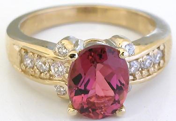 Gemstone: Natural Pink Tourmaline Oval Pink Tourmaline Diamond Rings in 14k yellow gold