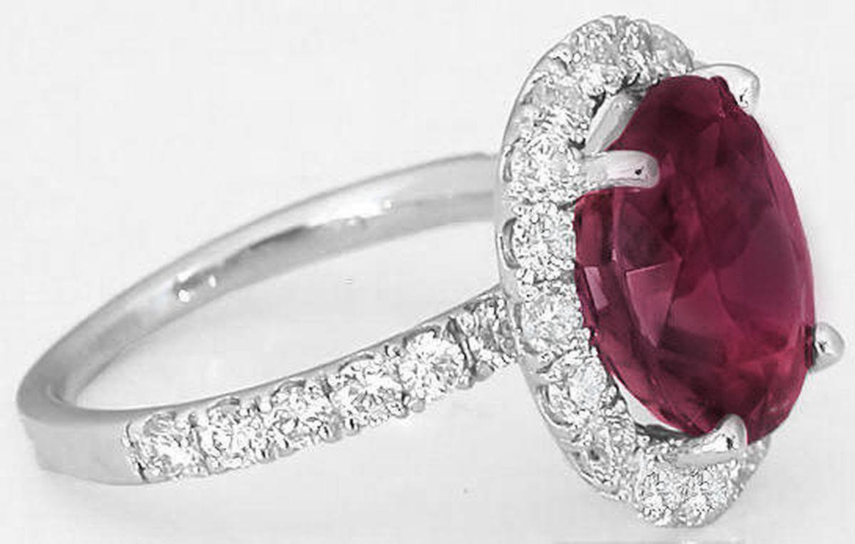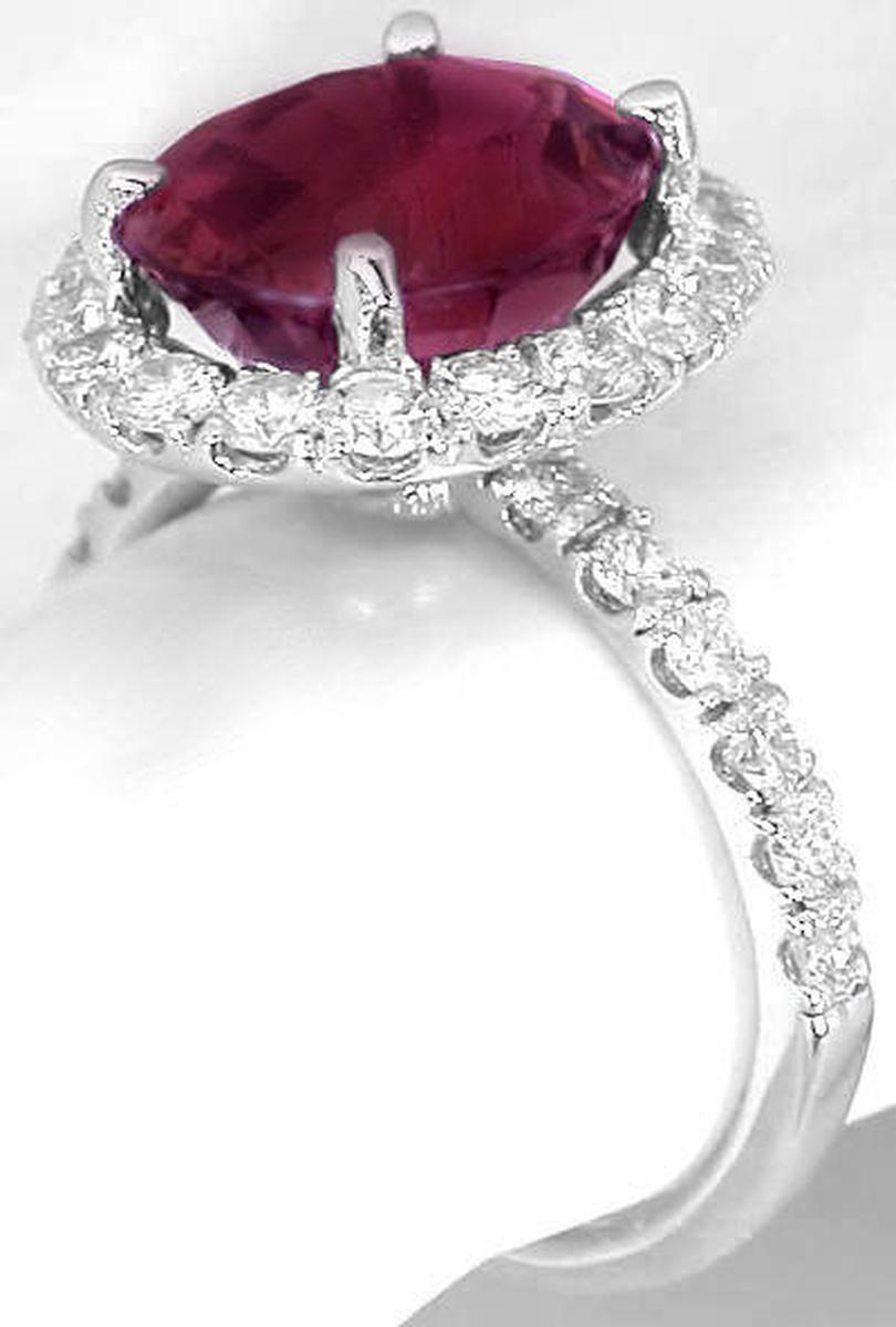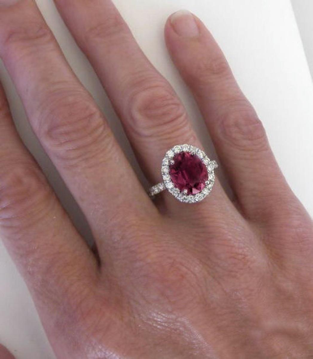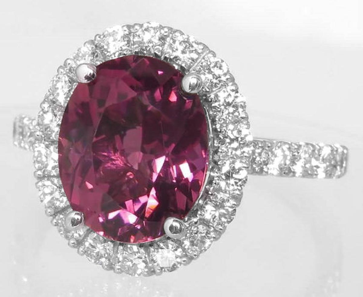 Special Features:If you appreciate that 'wow' factor you get from bright sparkling diamonds as much as you appreciate gorgeous, eye-catching color, this ring may very well be just what you are looking for. The setting has over 1 carat of fine diamonds, 16 brilliant cut round diamonds set around the tourmaline and 6 on each side of the band. Since the diamonds are large, they sparkle and shimmer like crazy! Beautiful gems always look even more lively when framed by fine diamonds and this delightful pink tourmaline is no exception. It weighs 4.66 carats and has a perfect pinkish rose color with a hint of raspberry.  We are just in love with this design. This is truly one of those exceptional, one of a kind pieces that you will rarely see. We hope that you love compliments because there is no doubt that this amazing ring will be the subject of many!  It is elegant, classy and sophisticated and would be an excellent choice for that signature piece or even a stunning engagement ring.