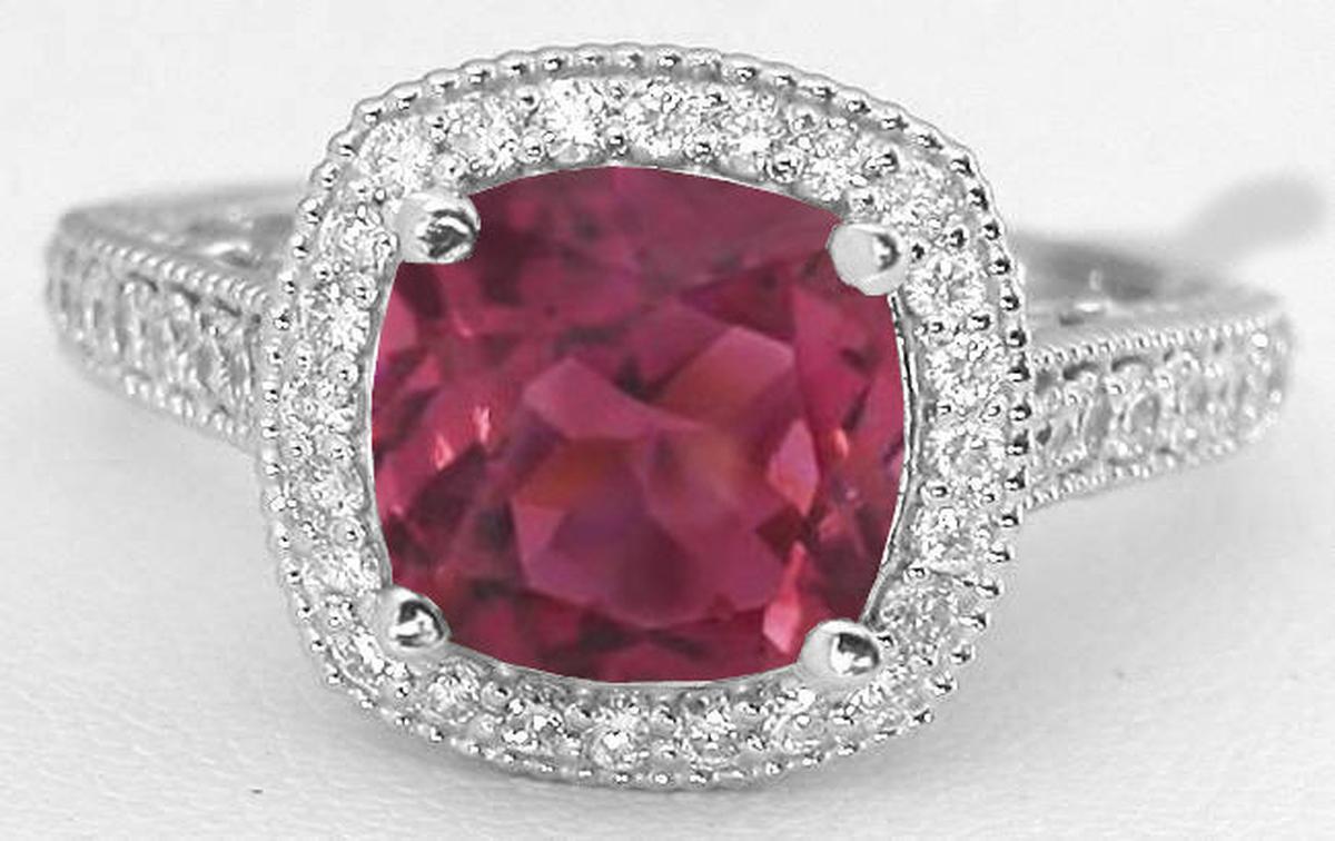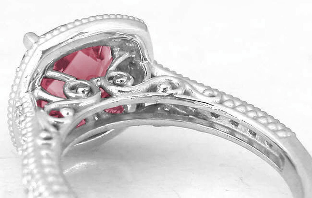 Filigree Style 2.90 ctw Cushion Pink Tourmaline and Diamond Ring in 14k white gold