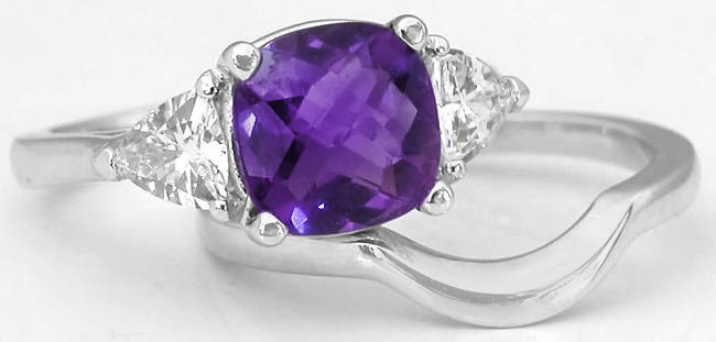 Cushion Amethyst and Trillion White Sapphire Engagement Ring