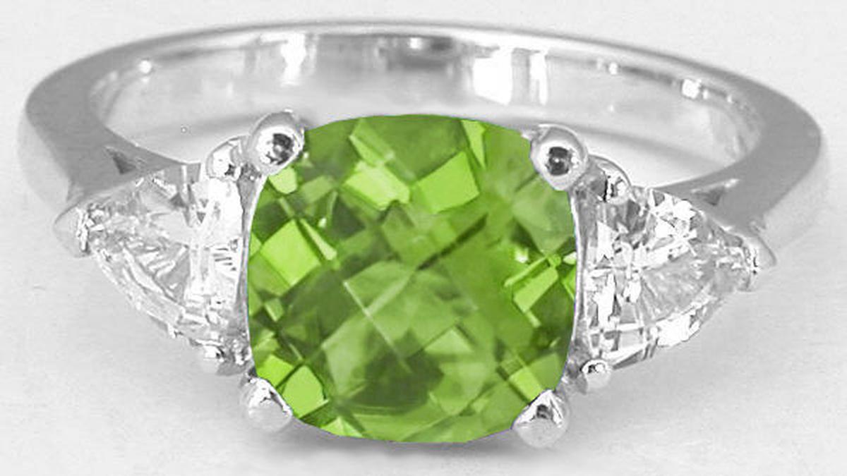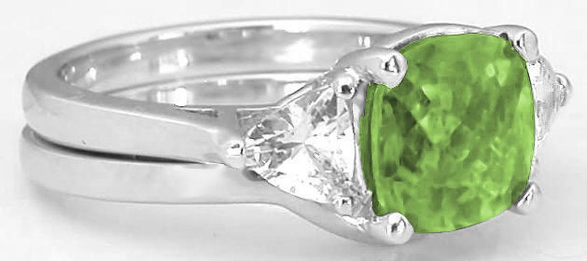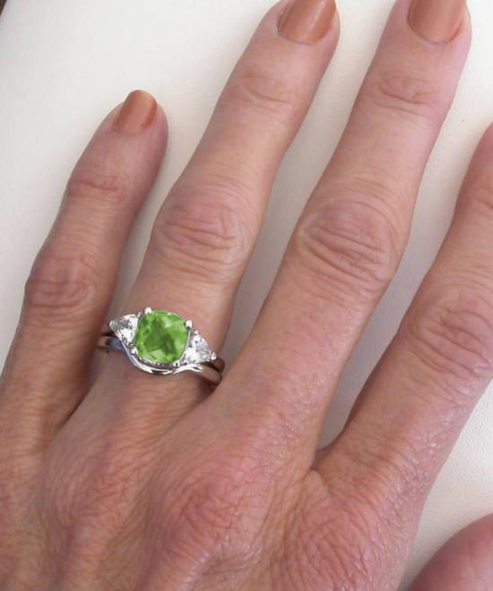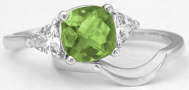 checkerboard faceted peridot we have set in the center. The peridot is of