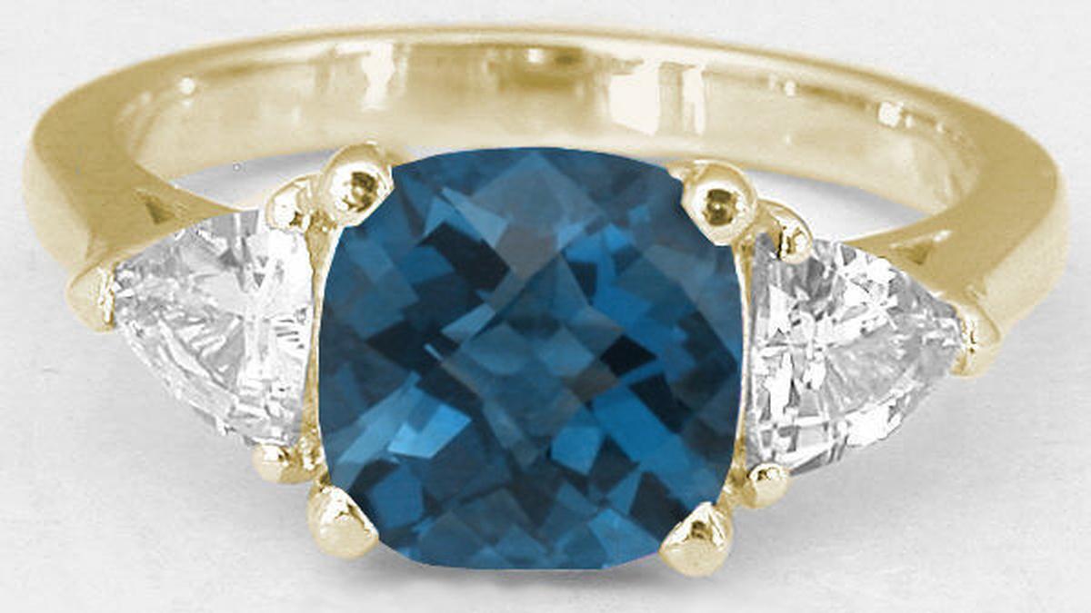 eye-catching 8mm cushion cut checkerboard faceted London blue topaz we have