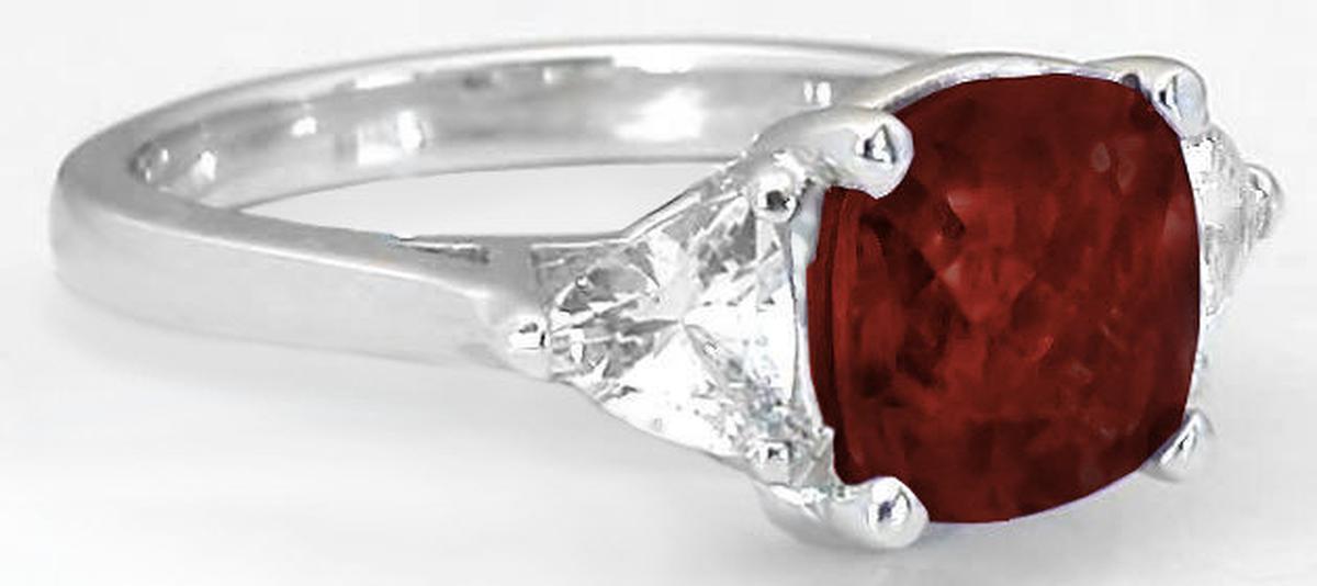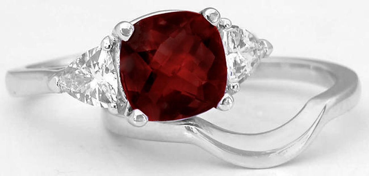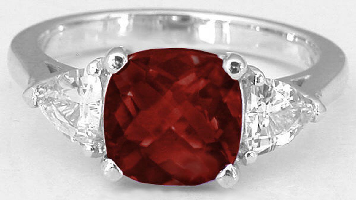 stunning 8mm cushion cut checkerboard faceted red garnet we have set in the