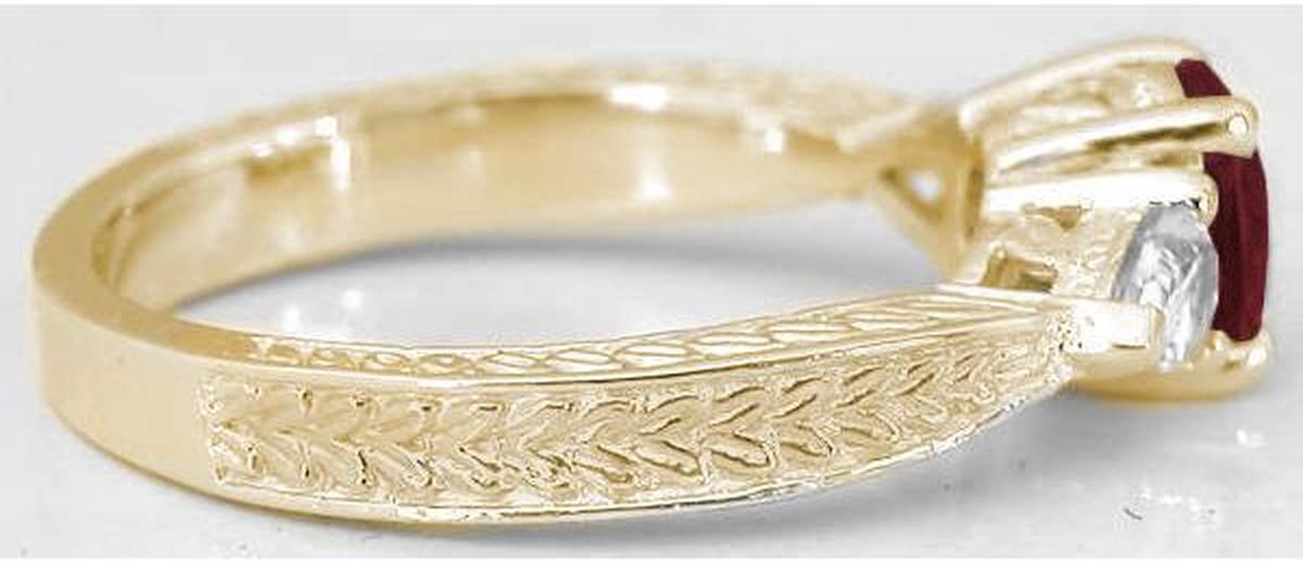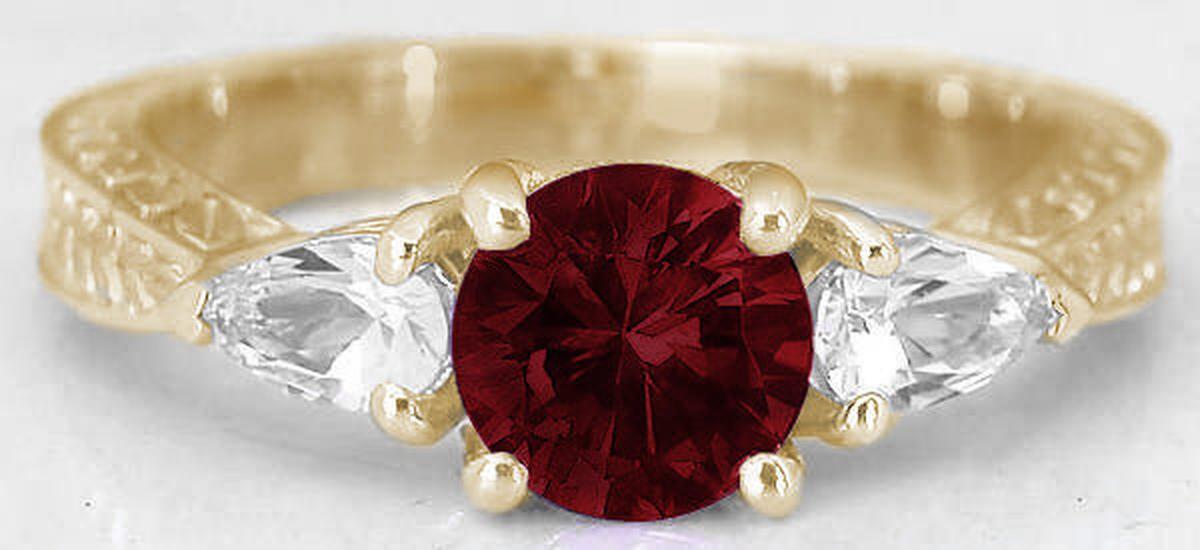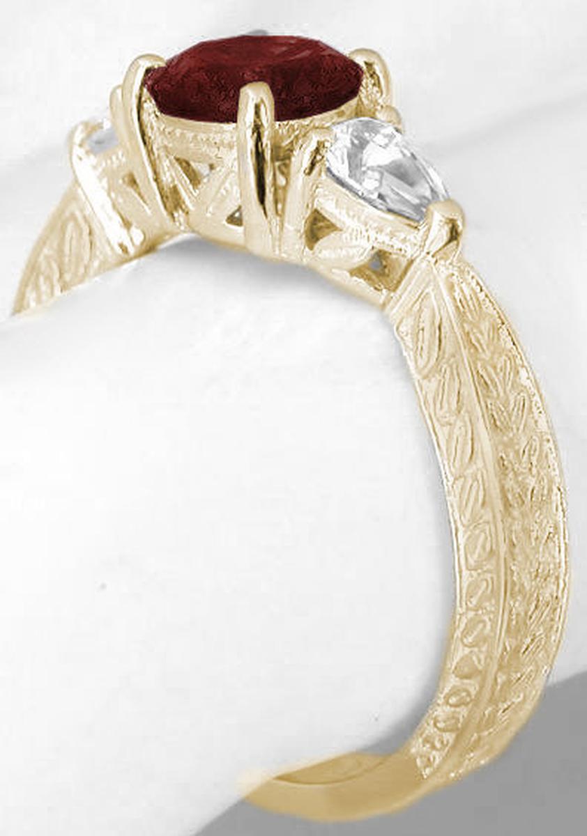 gold setting complements the color of the garnet beautifully. The garnet is diamond cut with brilliant style (triangle
