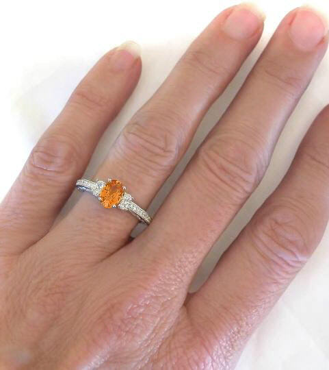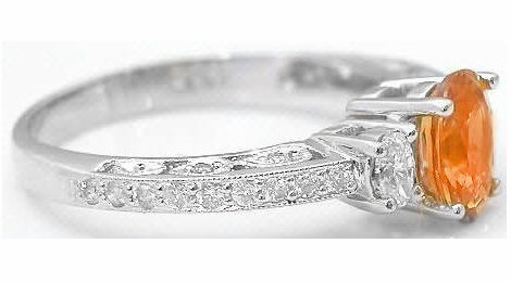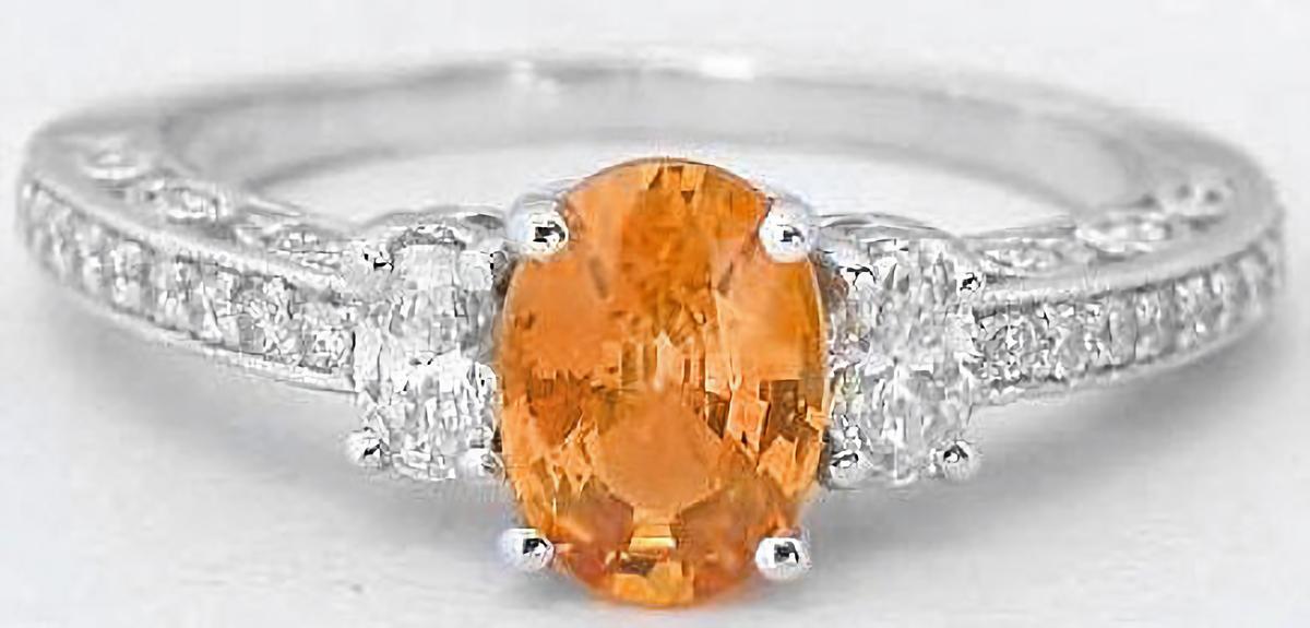 Real Orange Sapphire Ring with Diamonds in 14k white gold