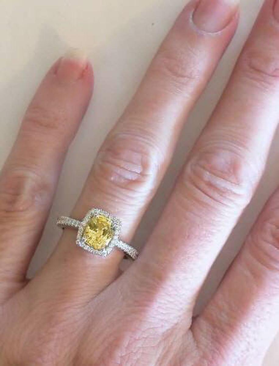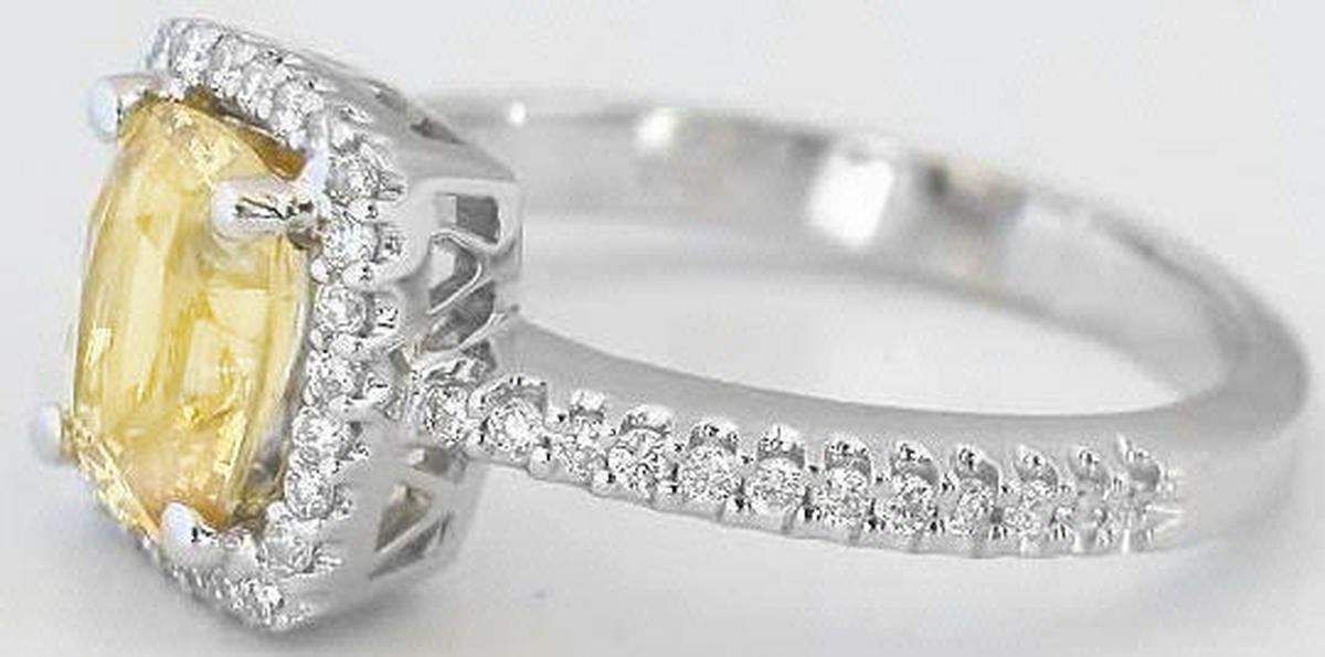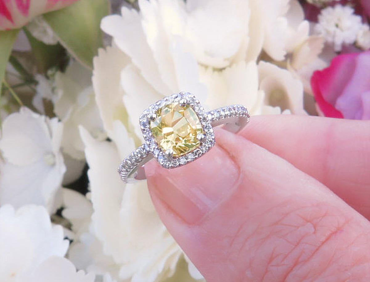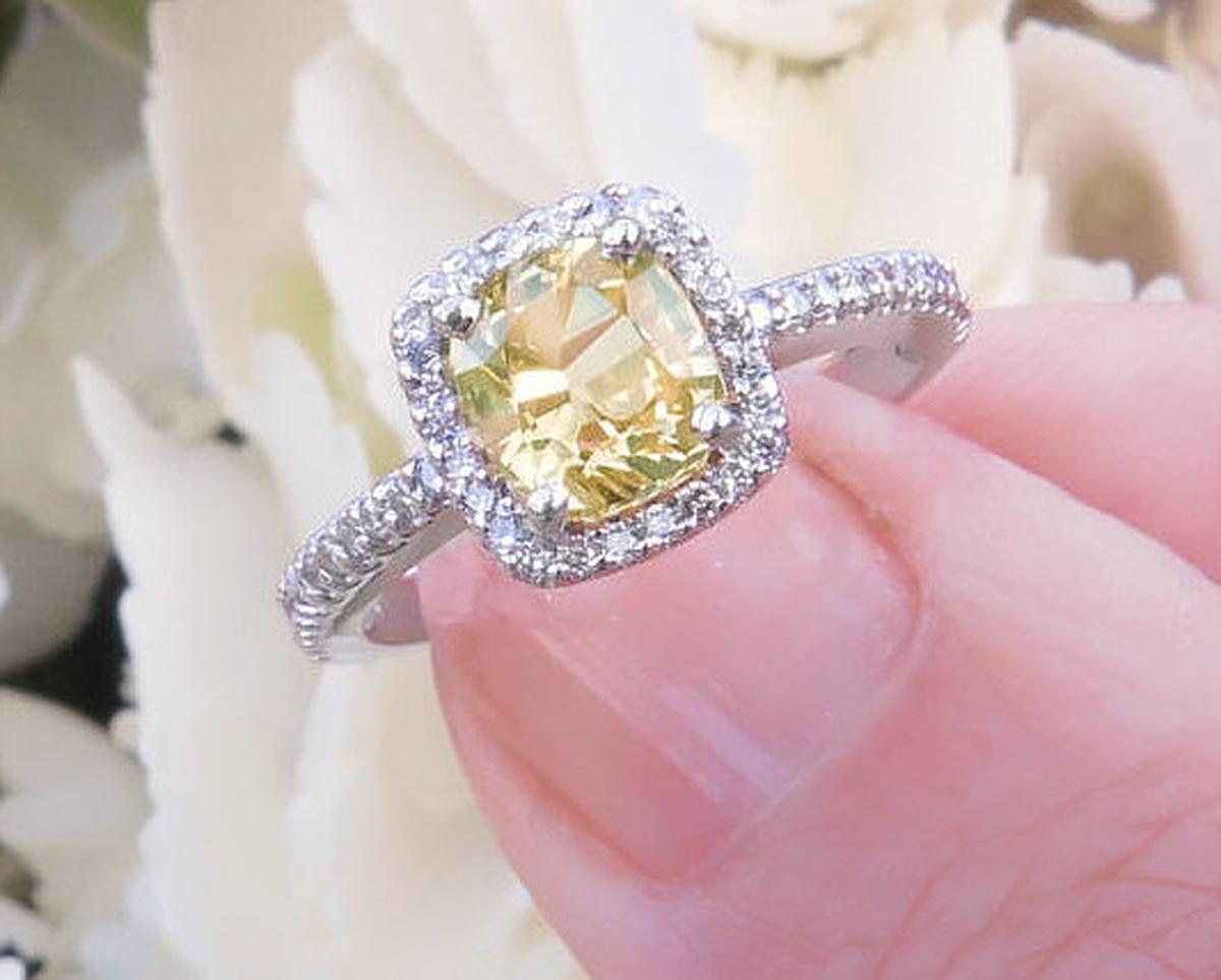 Hi Patricia: I have my ring! :) It's amazing! I just wanted to send a quick thank you -- I had read all of the testimonials on your website, and being me, I took them all with a grain of salt. As you know, I was nervous about my (now) fiance purchasing a ring online, but I couldn't find a good selection of yellow sapphire rings anywhere but on your site. I'm so glad that I took your advice and went with the ring we ended up with. I can't believe the number of compliments that I get. It's awesome! And, like the testimonials say, the pictures didn't do the ring justice. On a side note, we took it in to a jeweler to have them test the stones, and (this is no lie), at first sight, the two ladies behind the counter were surprised that it was a sapphire. They thought it was a yellow diamond. The man that tested the stones said it was one of the prettiest rings he's seen! It's almost comical the reaction that this ring gets from people!! It is perfect. That sums it up. It is perfect.