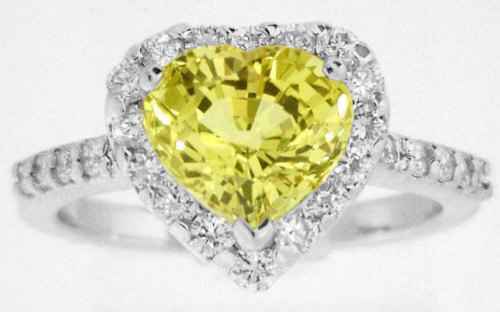 Heart Shaped Yellow Sapphire Rings in 14k white gold