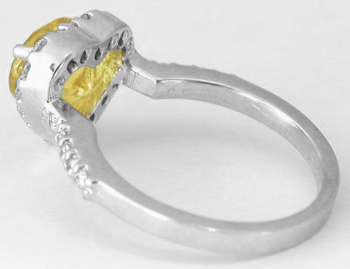 Gemstone: Natural Yellow Sapphire Heart Shaped Sapphire Diamond Halo Rings in 14k white gold